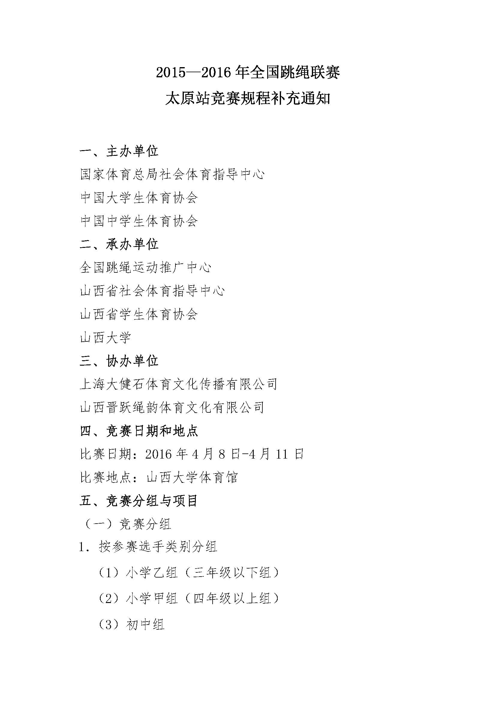 2015-2016年全國跳繩聯賽太原站競賽規程